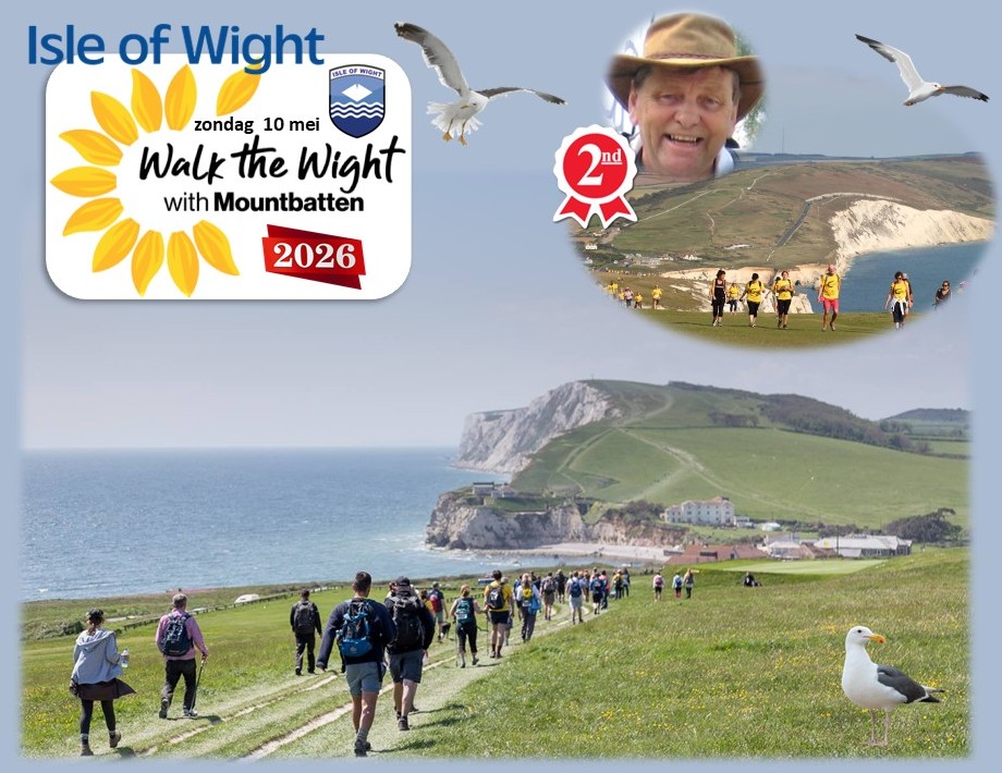 Voor de tweede keer ga ik op het Engelse eiland Wight deelnemen aan een sponsor wandeltocht. De opbrengst van alle inschrijvingen en donaties van supporters komen ten goede aan het Hospice van het eiland. Gezien mijn leeftijd heb ik besloten om het tweede deel (24 km) te gaan wandelen net als in 2024. Vooral de laatste 5 km gaan over en langs de kliffen van het eiland met regelmatig behoorlijke stijgingspercentages. ( zoals geschreven later volgt mijn verslag )